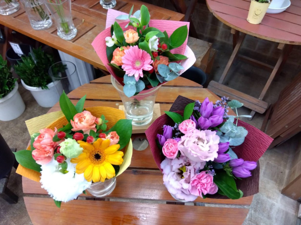 大田市場から毎朝仕入れる季節の花々は、どれも華やかで、日々の生活をふっと明るくしてくれるものばかりです。贈り物にぴったりのブーケや、用途に合わせたフラワーアレンジメントも、丁寧に心を込めてお作りしています。